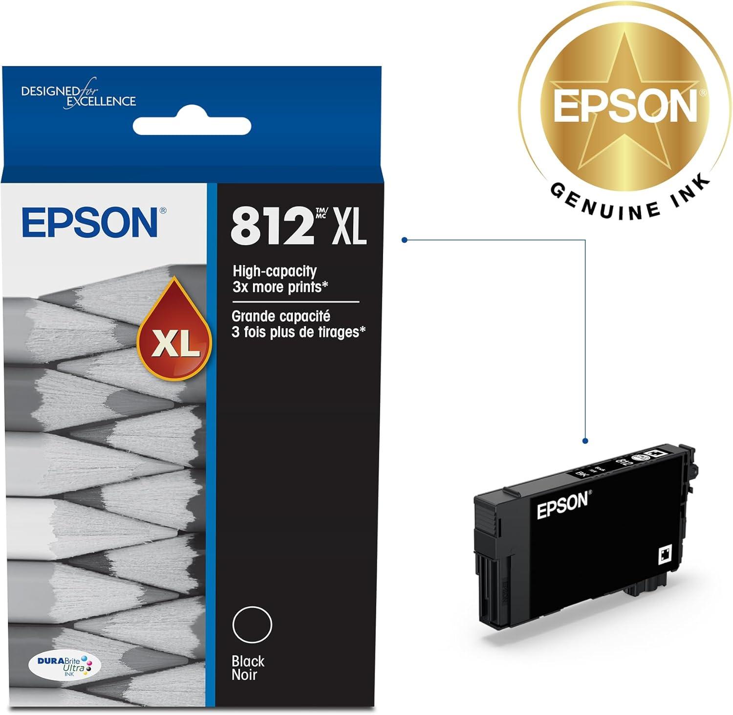 EPSON 812 DURABrite Ultra Ink High Capacity Black Cartridge (T812XL120-S) Works with WorkForce Pro WF-7310, WF-7820, WF-7840, WorkForce EC-C7000(Ink)