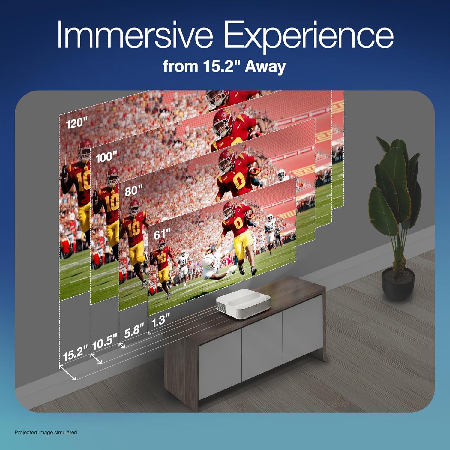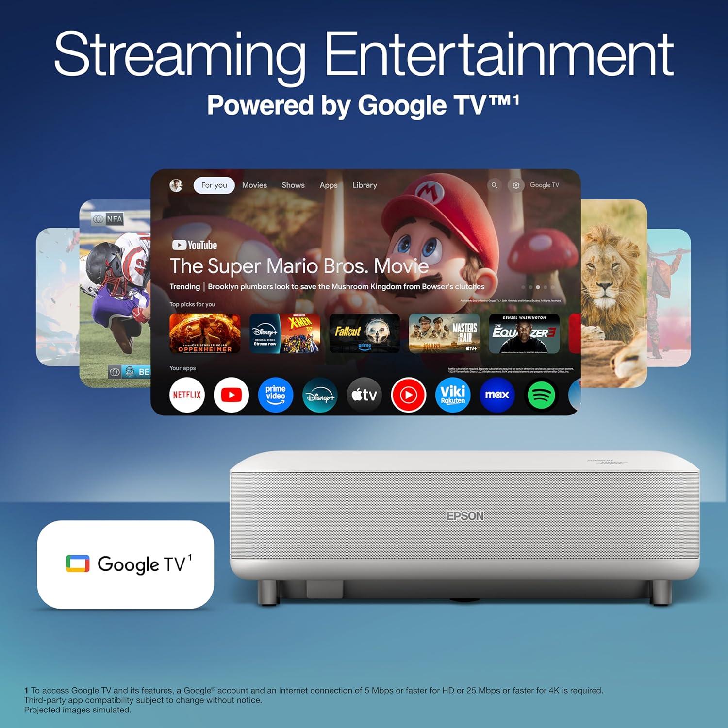 Transform your room into a cinematic escape with the Lifestudio Grand Ultra Short Throw Laser Projector. Designed to deliver stunning visuals, powerful sound and seamless streaming—all in one sleek, compact device. With ultra short throw technology, you can place the Lifestudio Grand projector just inches from the wall and enjoy a massive, theater-like display up to 120″. Whether you're in a small room or a spacious living area, you'll get a truly immersive picture without needing a ceiling mount or long throw distance. Experience exceptional clarity with cutting-edge 4K PRO-UHD¹, while advanced HDR10² picture processing delivers incredible detail, vibrant color and deep contrast—without sacrificing brightness. Powered by advanced 3-chip 3LCD technology, the Lifestudio Grand produces an impressive 3,600 lumens of color brightness (IDMS Rated) and 3,600 lumens of white brightness (ISO Rated)³, creating a vivid, true-to-life picture in nearly any lighting condition—even in daylight or with the lights on. Enjoy immersive sound that fills the room with Lifestudio, the world’s first smart streaming projectors featuring Sound by Bose technology. The custom-designed 2.1 stereo system creates audio you can feel, delivering rich, balanced sound with deep bass, pulling you—and everyone around you—right into the action. We can’t wait for you to hear it. Go beyond movies and shows with the Epson Studio app⁴. Easily create and share personalized videos that bring your favorite moments to the big screen. It’s a whole new way to entertain. And finding something to watch has never been easier. Just power on your Lifestudio Grand projector and the built-in Google TV⁵ puts over 10,000 streaming apps at your fingertips⁶, including Netflix, Disney+, and Hulu. With Google Assistant you can use the included voice remote to search across all apps, including live TV and even YouTube to find exactly what you’re looking for. Welcome to the Epson family of Lifestudio Short Throw Projectors. What unforgettable moments will you create?